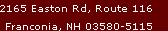Our old home in the shadow of Cannon and Kinsman Mountains is, as one guest said, “as comfortable as your old slippers.” We await your arrival. Come in the winter for skiing, snowshoeing or hiking and in the spring for the Lupine Festival. Summer finds guests exploring the area by foot, bicycle, or car and sitting on the front porch as the sun sets. And of course in the fall, Mother Nature paints our trees glorious shades from her palette for all to see whether from the mountain tops as you hike or the valleys as you drive. We are open all year. |